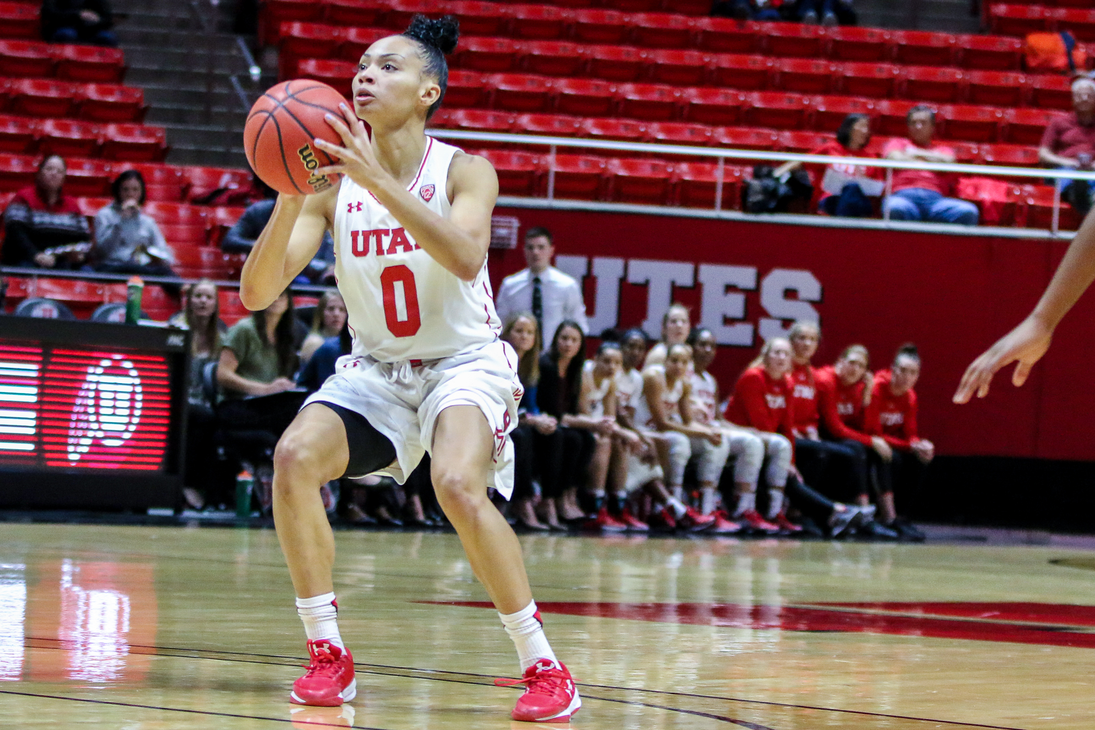 2018-19 (Junior): Pac-12 All-Defense honorable mention … played in all 30 games, starting 17 … averaged 9.2 points and 27.9 minutes per game … ranked seventh in the Pac-12 in three-point shooting percentage (.398) … regularly guarded the opponent’s best player, finishing with 26 steals … went from averaging 5.5 points per game during non-conference play to 11.6 in Pac-12 play … scored in double-digits in 13 games, including one 20-point game … scored a career-high 26 points on 8-of-13 shooting from the floor and 6-of-9 shooting from deep against Washington State (2/24) … had 19 points, shooting 60-percent from the floor and 83-percent from the three in her first start of the season against Arizona (1/6) … 18 points, career-high eight rebounds, three assists and two steals in 40 minutes of playing time against Cal (1/25) … put up 17 points against both Washington (2/22) and UCLA (2/10) … scored 15 points that included going 3-of-5 from the three against Colorado (1/18), adding two assists and three steals … recorded 13 points and four rebounds at USC (3/1) … 11 points on 5-of-10 shooting in Utah’s home-opening win over Alabama (11/13).